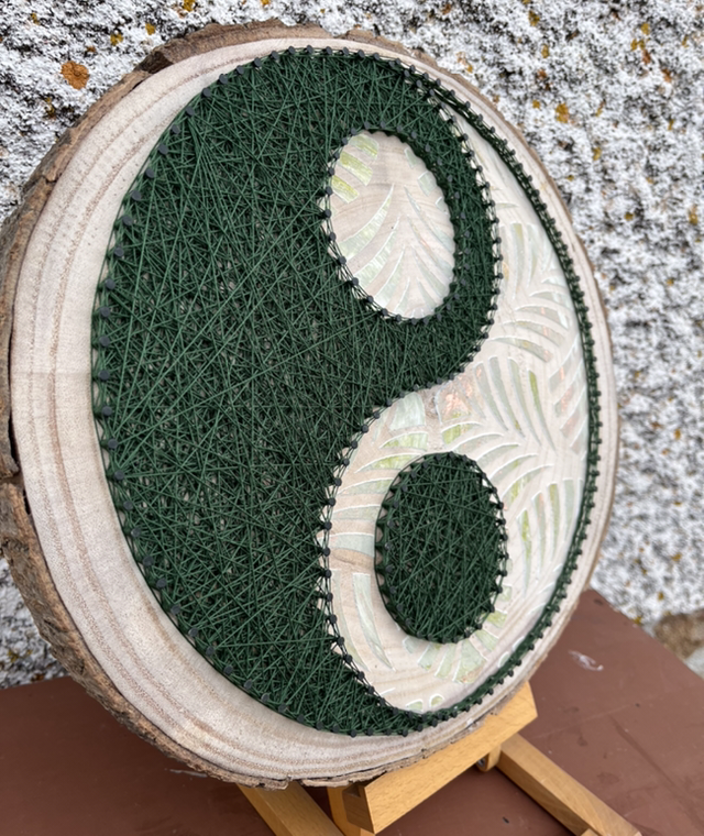 Yin-Yang sur rondin de bois;